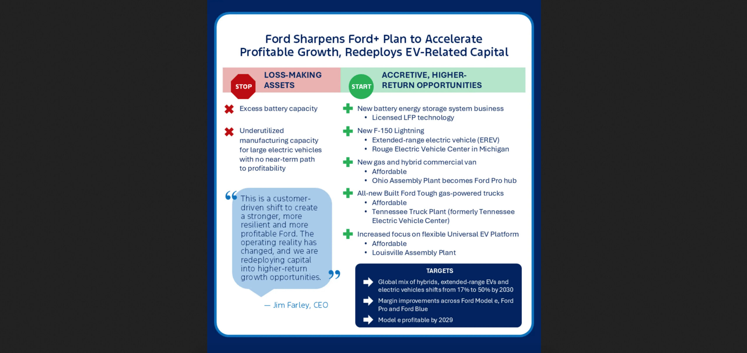 – The battery plants that were going to supply Blue Oval City will pivot to making LFP prismatic batteries for energy storage.