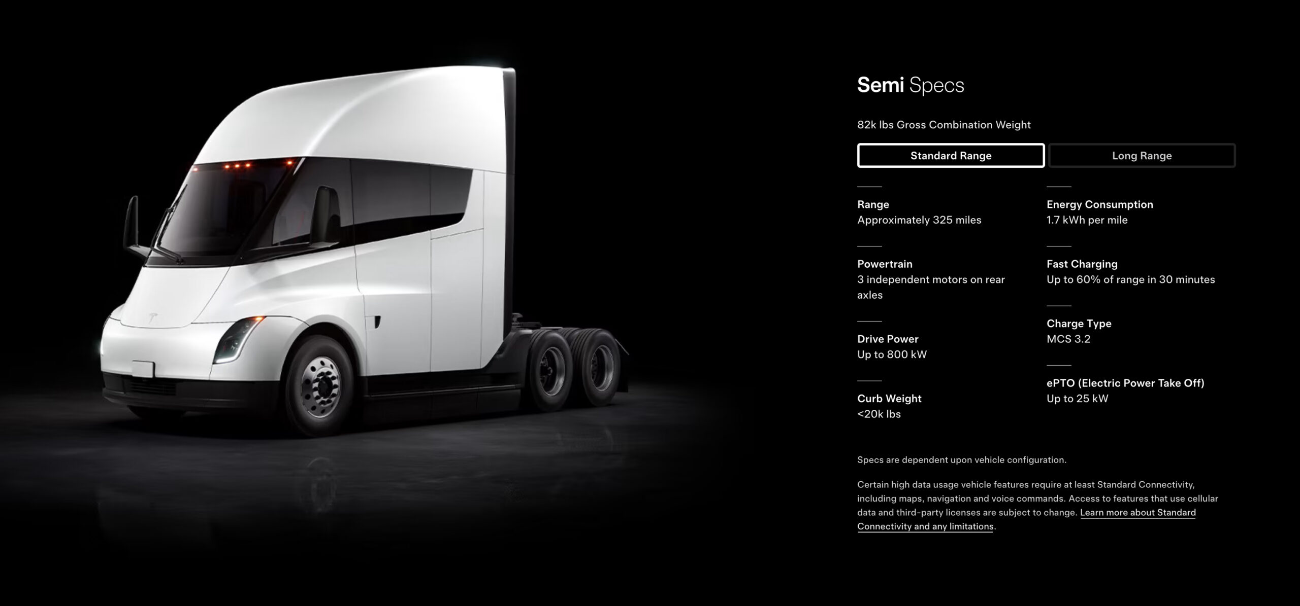 While Tesla seems more focused on autonomy and robotics than its passenger car sales, its jump into the commercial market is just around the corner. Volume production of the Tesla Semi is scheduled to start in the first half of this year and the company revealed some of the final specs for the Class 8 trucks. It will be offered in Standard and Long Range trims. Both feature 3 independent electric motors on the rear axles, which provide up to 800 kW or about 1,050 horsepower. The Standard Range has an estimated 325 miles of range when fully loaded, while the Long Range gets 500 miles. Active safety features are installed right from the factory, but Tesla also notes the Semi is “designed for autonomy,” so self-driving trucks sound like part of the future plan. The EV maker claims the Semi can be cheaper per mile than a diesel truck and that operators may be able to get a positive return-on-investment. However, that will also depend on how much it costs compared to a diesel truck, which is about $150,000 – $220,000 new, but Tesla hasn’t revealed pricing for the Semi yet.